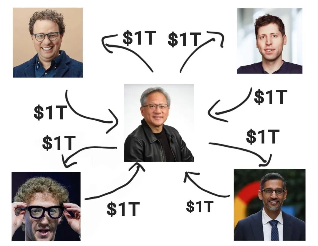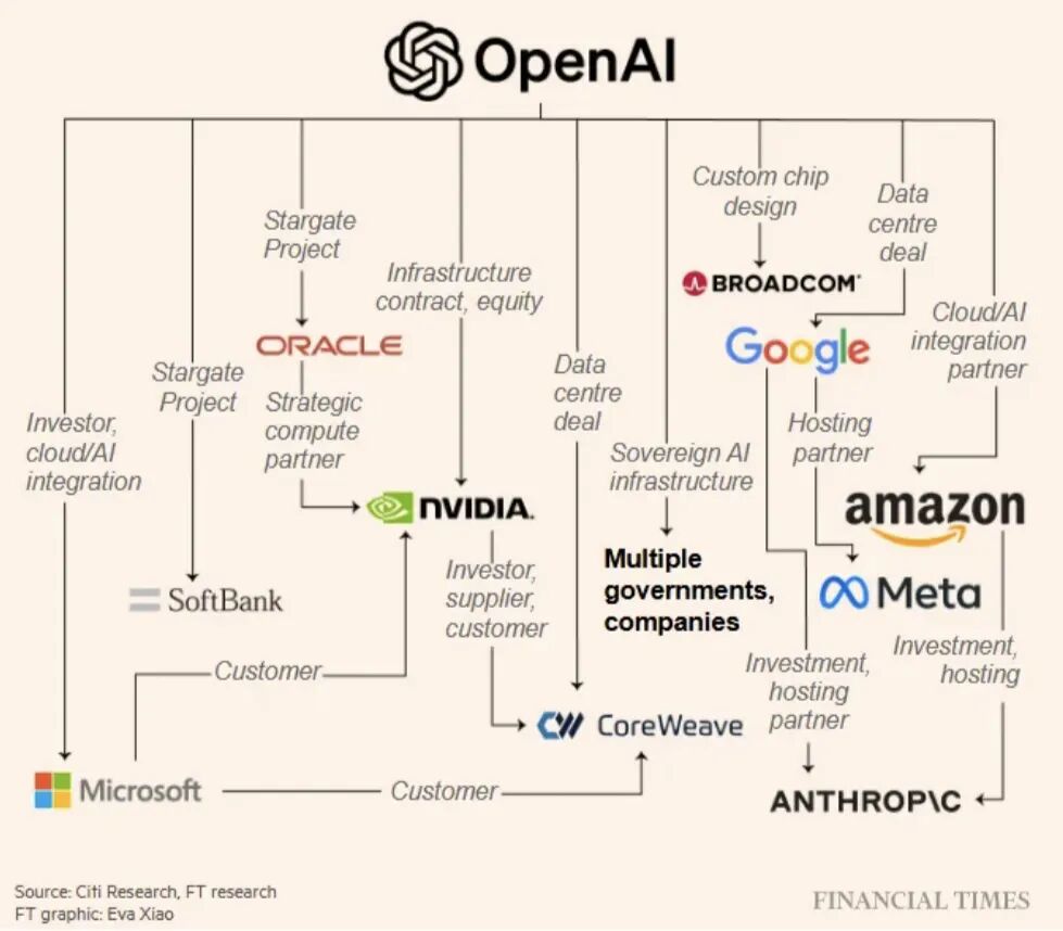 以下是openAI关系网和目前的千亿美元流向图: