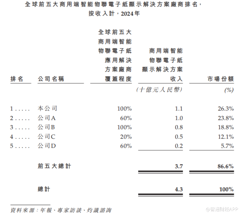 需注意的是,行业竞争与技术迭代风险可能压缩公司利润空间。根据灼识咨询,2024年全球智能物联电子纸显示解决方案行业前五大厂商市场份额达81.2%,集中度较高,公司既面临国内竞争对手在成本与本地化服务上的挑战,也需应对海外厂商在消费端市场的先发优势;同时,LCD、OLED等显示技术若在低功耗领域取得突破,可能对电子纸形成替代压力。