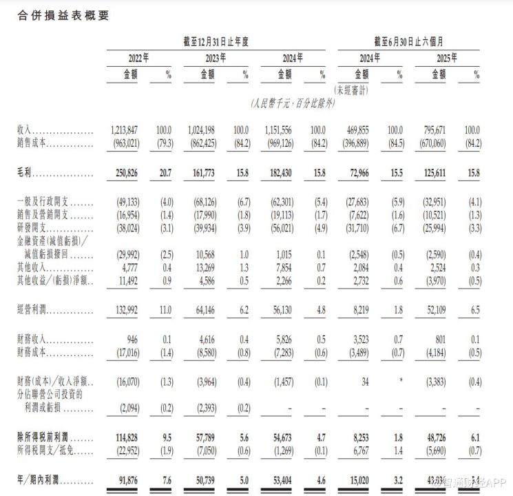 值得注意的是,截至2022年、2023年及2024年12月31日以及2025年6月30日,贸易应收款项及应收票据的账面值分别为2.42亿元、2.11亿元、2.71亿元及3.49亿元。公司称,上述为贸易应收款项及应收票据,为公司截至相关日期所面临的贸易应收款项及应收票据相关的最大信用风险敞口。