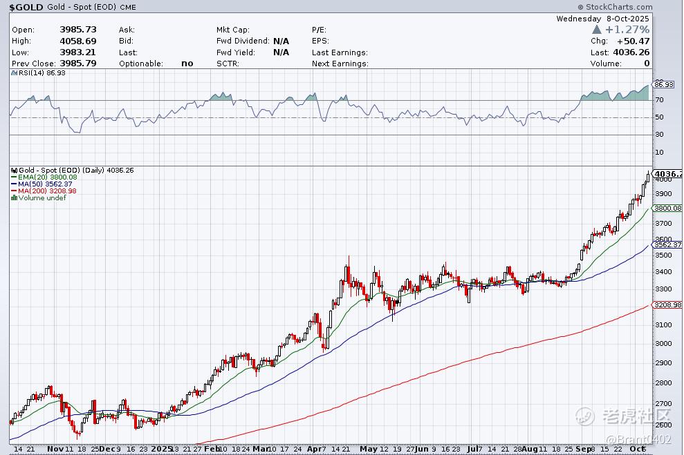 黄金再创新高,突破每盎司4000美元大关,引发了整个华尔街的热议。