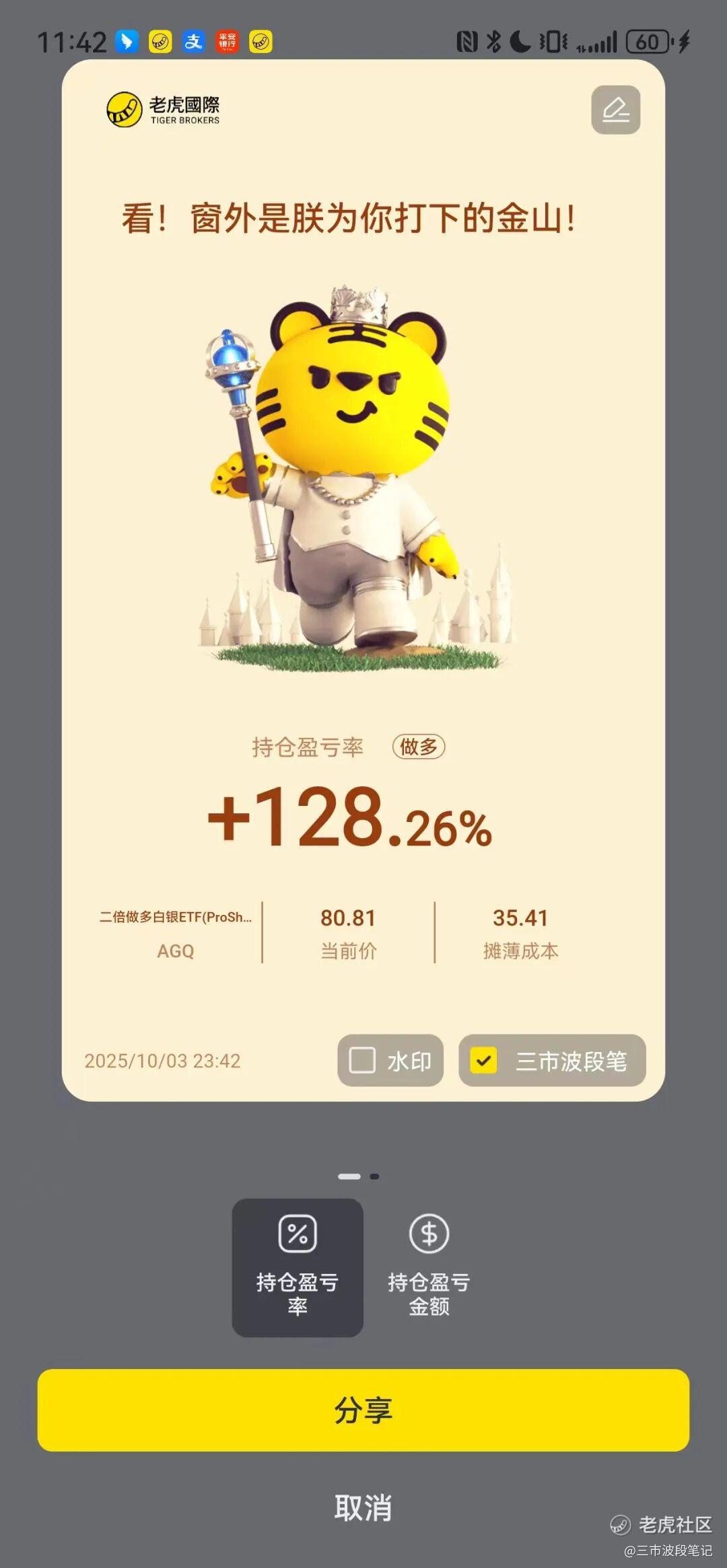 $二倍做多白银ETF(ProShares)(AGQ)$ 减仓至 1 成