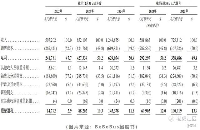 BeBeBus的增长路径,高度依赖社交媒体的精准爆破。2022至2024年间,公司累计投入近6.4亿元推广费用,与小红书、抖音等平台的KOL深度绑定,成功实现了品牌的裂变式传播,并直接助推其营收从5.07亿元飙升至12.49亿元,创下56.9%的三年复合年增长率。然而,在生育率持续低迷、消费者信心普遍不足的宏观背景下,如何维持稳定的高增长,成为BeBeBus上市后面对的严峻考验。