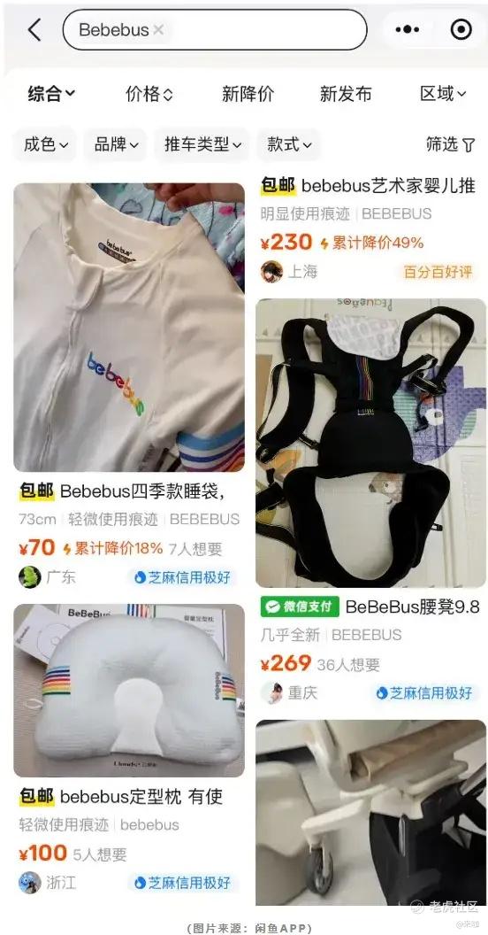 其一,是二手市场带来的“价值折损”。在闲鱼等平台上流通着大量的BeBeBus产品,虽从侧面印证了其品牌热度与保值能力,如同奢侈品的“二手流通”一样构成了品牌价值的一部分;但过度活跃的二手市场,无疑会分流部分新品销量,尤其在经济下行期,更多父母会选择“性价比”更高的流转品。这一趋势,是品牌方在宏观环境下难以控制的系统性风险。