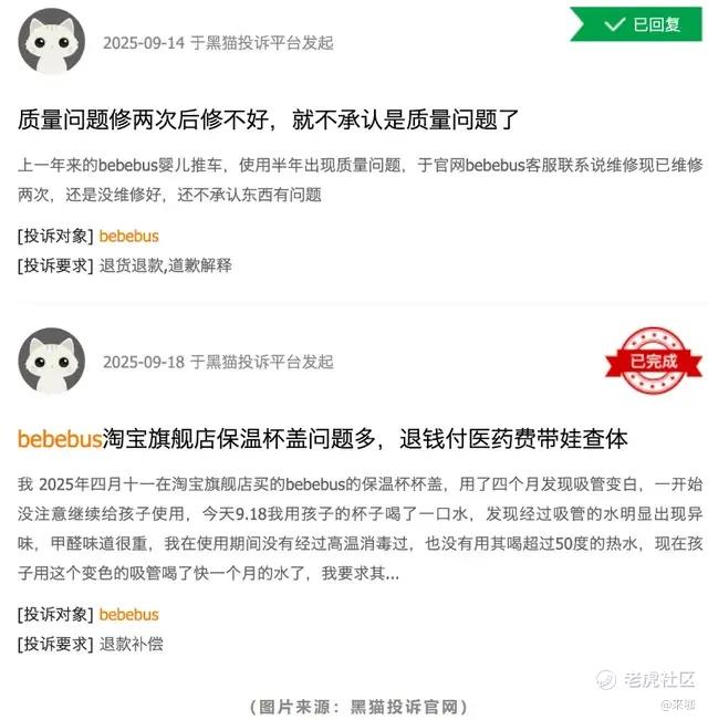 其二,BeBeBus的营销叙事高度依赖于为新一代父母塑造“精致育儿”的价值观,这套话语体系虽然有效,却也脆弱。新一代消费者愿意为美学设计和情绪价值买单,但母婴类产品最内核的竞争力始终是安全和品质,同时,中高端的价格定位会更放大消费者对品牌和商品的预期。品牌一旦出现负面问题,消费者之间更容易产生共情,事件影响更容易发酵。黑猫投诉平台上已经出现了关于BeBeBus质量问题的投诉,小红书上也有用户质疑其性价比,称“为颜值买单,但品质配不上价格”。