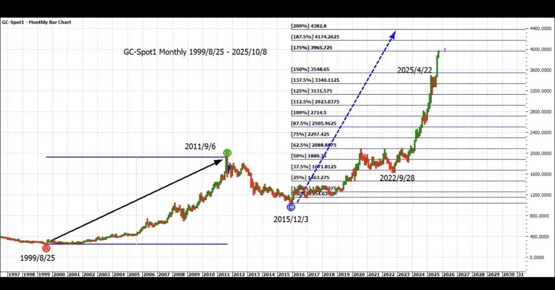 →此前从325%阻力位下跌回踩75%阻力位,现在反弹至125%阻力位,故而上涨空间巨大。(假设它将重回历史高点)。