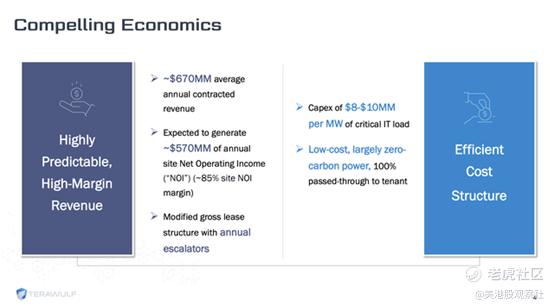 根据合同条款,该项目每年将为TeraWulf带来6.7亿美元营收,其中矿场层面的净运营收入(简称NOI)约为5.7亿美元。与众多其他人工智能基础设施企业类似,TeraWulf通过签订长期合同,确保了业务能立即产生正向现金流。