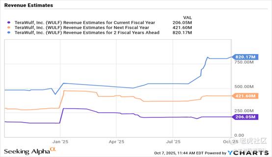 分析师普遍预测,TeraWulf的营收将实现逐年翻倍。具体来看,2025年该公司营收预计达到2.06亿美元,2027年则有望突破8.2亿美元。