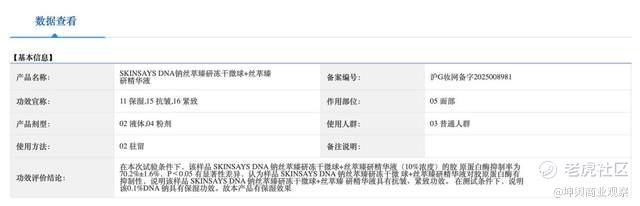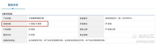 根据国家药品监督管理局信息,该产品备案时间是2025年4月28日,境内责任人是青岛欧泊生物科技有限公司,备案可宣称的功效有保湿、紧致,作用部位是“面部”,使用方法是“驻留”。