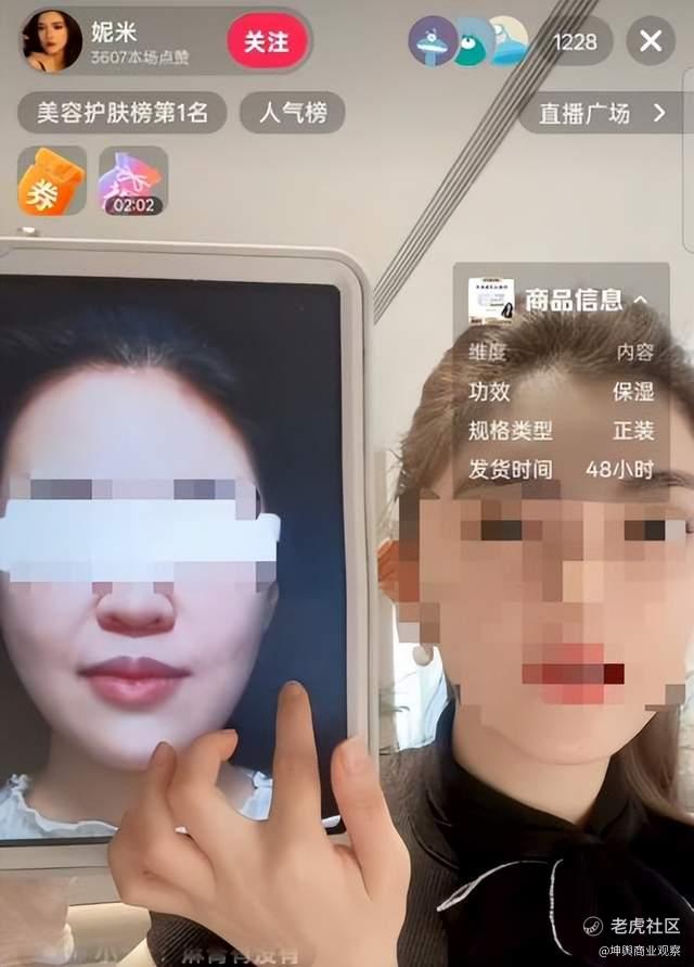 北京时间财经记者注意到,一个账号名为“妮米”的直播间内,主播妮米通过“先溶(脂)、再做骨性材料提拉、搭配超声刀”的操作和讲述逻辑,配合现场展示教学产品的使用手法,将妆字号的化妆品销售给在线观众。