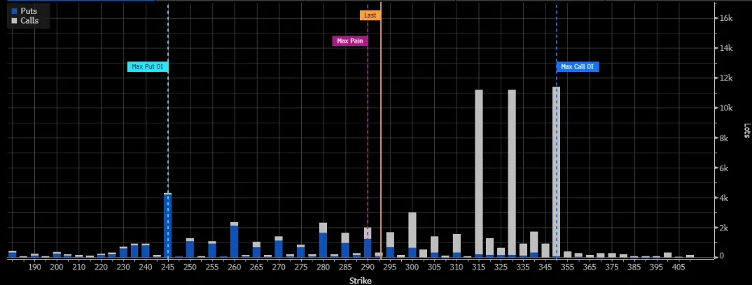 尽管10月10日科技股整体大回调,但ORCL(-1.35%)的表现优于大盘,也说明近期多头力量并不小。从期权上来看,ORCL再10月后几周以及11月均有300-350的大量为平仓订单,其中10月24日当周的315-330-350均有异常大单。