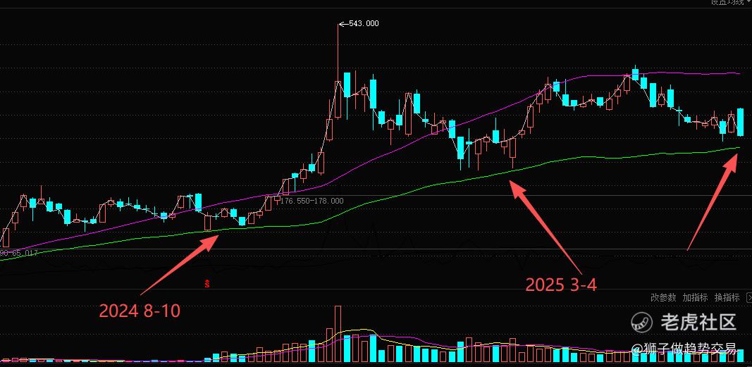 MSTR在2024年8-9月间和 2025年3-4月间,两次打到了下轨,但是被顽强地守在了线上。