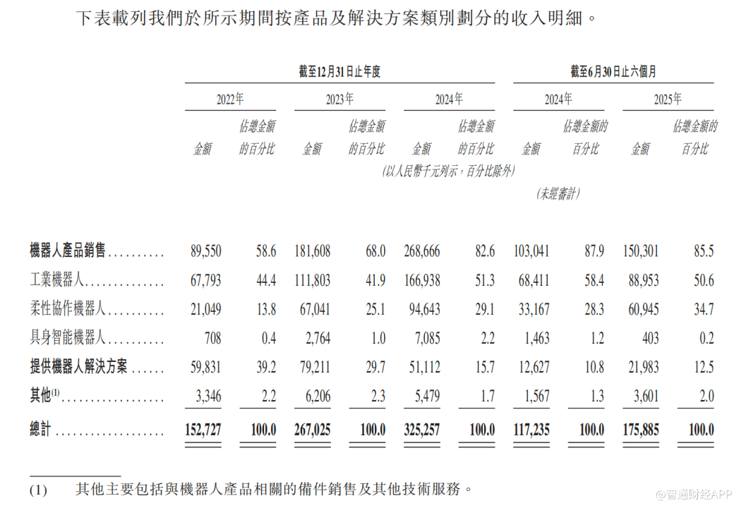 硬核产品力,叠加广泛的客户基础及卓越的服务能力,不仅带来了销量的持续攀升,更推动了盈利能力的稳步提升。2022-2024年,珞石机器人营收从1.53亿元(人民币,下同)增长至3.25亿元,年均复合增长率达45.75%。2025年上半年营收达1.76亿元,同比增幅超50%。毛利率从2022年的7%攀升至2025年上半年的22.3%。