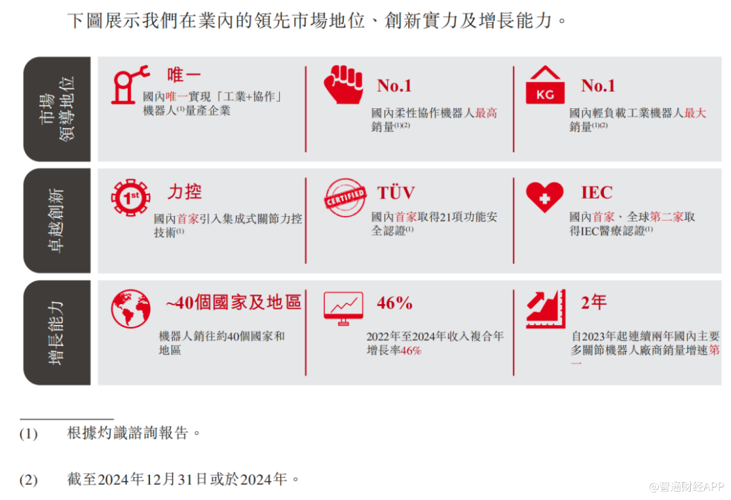 这种技术为核、场景适配的产品开发逻辑,转化为强劲的市场竞争力。据灼识咨询报告,按2024年销量计,珞石多关节机器人在中国市场国内制造商中排名第三,且自2023年起连续两年位居中国主要多关节机器人制造商销量增长率之首。2024年,公司成为国内柔性协作机器人和轻负载机器人“双料销冠”,其中,柔性协作机器人市场份额高达34%。