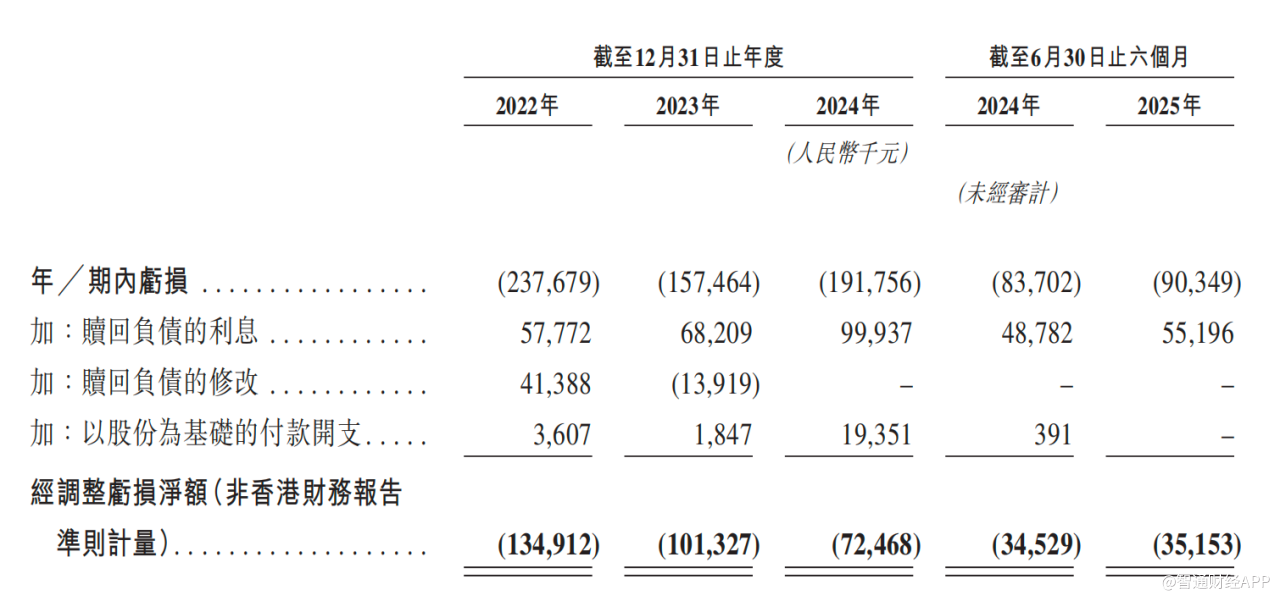 珞石机器人在招股书中指出,公司将经调整亏损净额定义为年度或期间的亏损,调整内容包括赎回负债的利息、赎回负债的修改及以股份为基础的付款开支。以股份为基础的付款开支指由公司授予员工的股份激励产生的非现金费用。赎回负债的利息指就公司的融资安排中包含的上市前投资者的赎回权利产生的利息。公司于往绩记录期间的赎回负债是由于公司的融资安排中包含的上市前投资者的赎回权利,上述权利被记录为金融负债。赎回负债将在赎回权利终止时终止确认,并在上市后将不再对上述上市前投资的赎回负债支付利息。