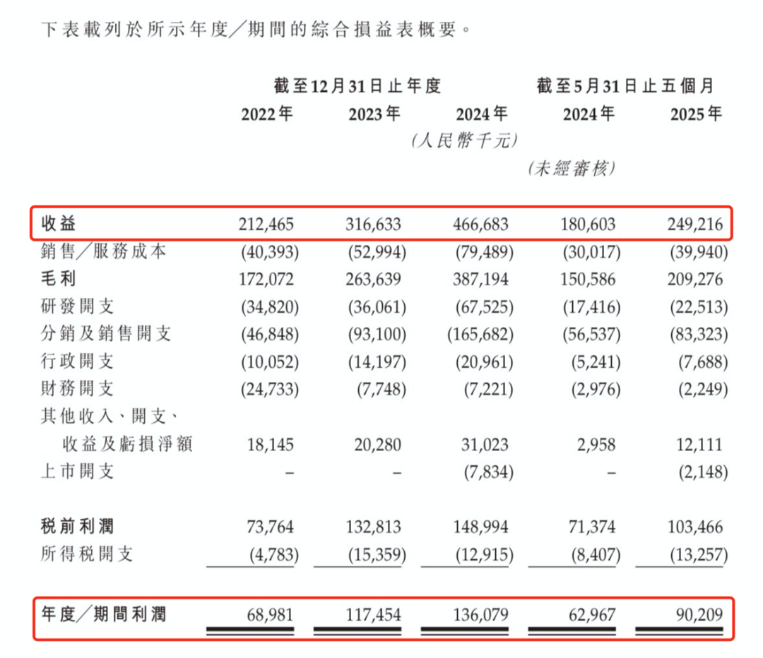 公司毛利率持续保持在80%以上的高水平,2022年至2024年毛利率分别为81%、83.3%和83.0%,2025年前五个月进一步升至84%。