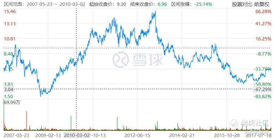 百丽国际上市十年间股价表现,图片来自雪球。