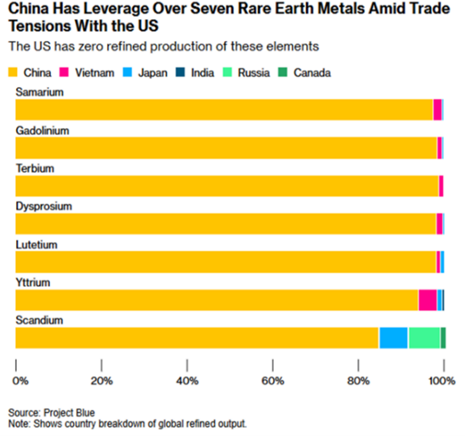 图5 中国在与美国的贸易紧张局势中掌握了七种稀土金属的优势