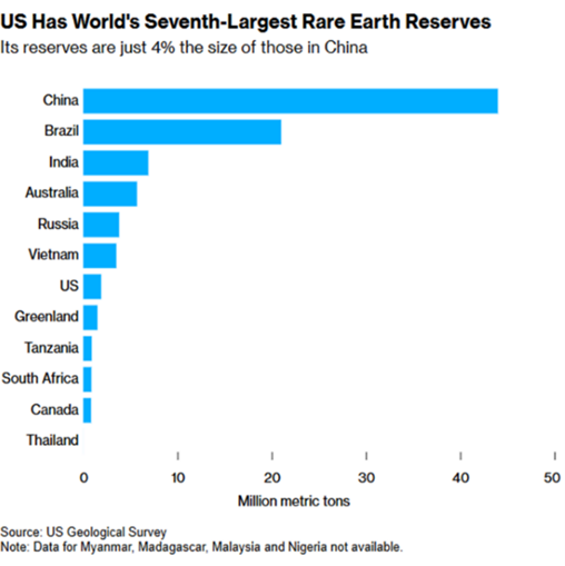 图4 美国拥有世界第七大稀土储备(其储备量仅为中国的四分之一)