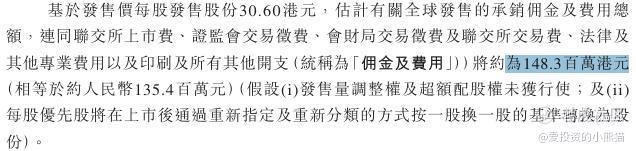 然后这个票招股书上按发售价30.60港元计算,公开的上市所有开支总额约为1.48亿港元,募资额约20.86亿港元,占比约7.09%,开支相比募资额算是比较少了。