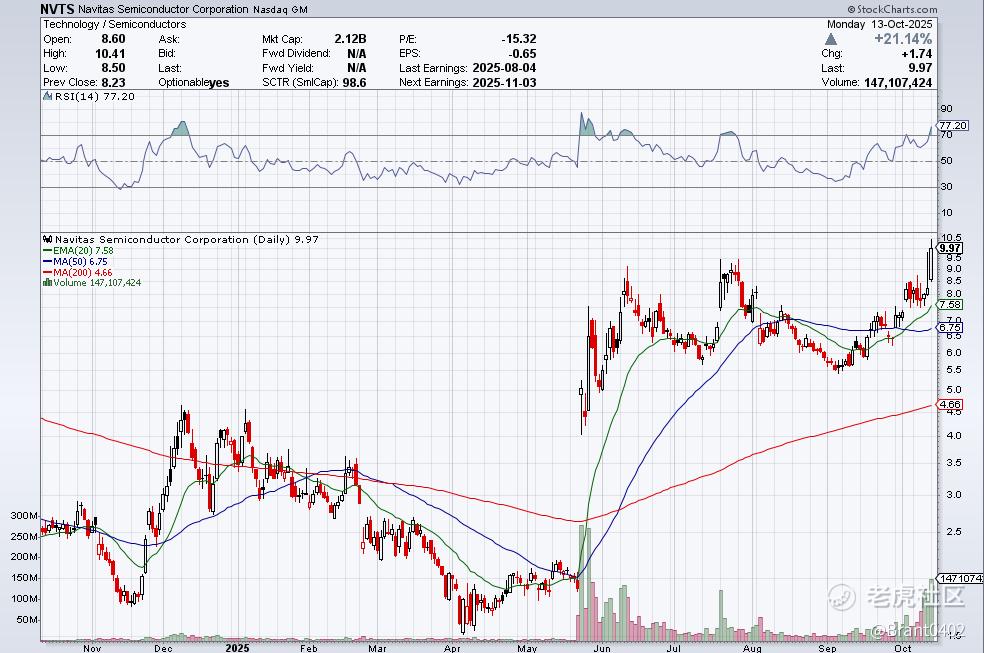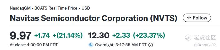 NVTS +21.14%,盘后继续涨23.37%;