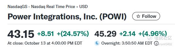POWI +24.57%,盘后再升4.96%。