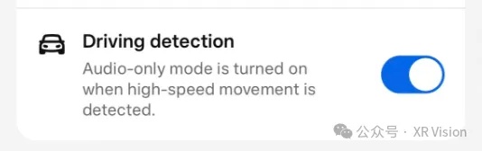 另外,Meta对于开车导航是做了限制的,在Meta AI的“设置”里,如果开启开车检测,设备会根据手机GPS的移动速度来自动关闭显示,开启Audio-Only的模式,以保证驾驶的安全。