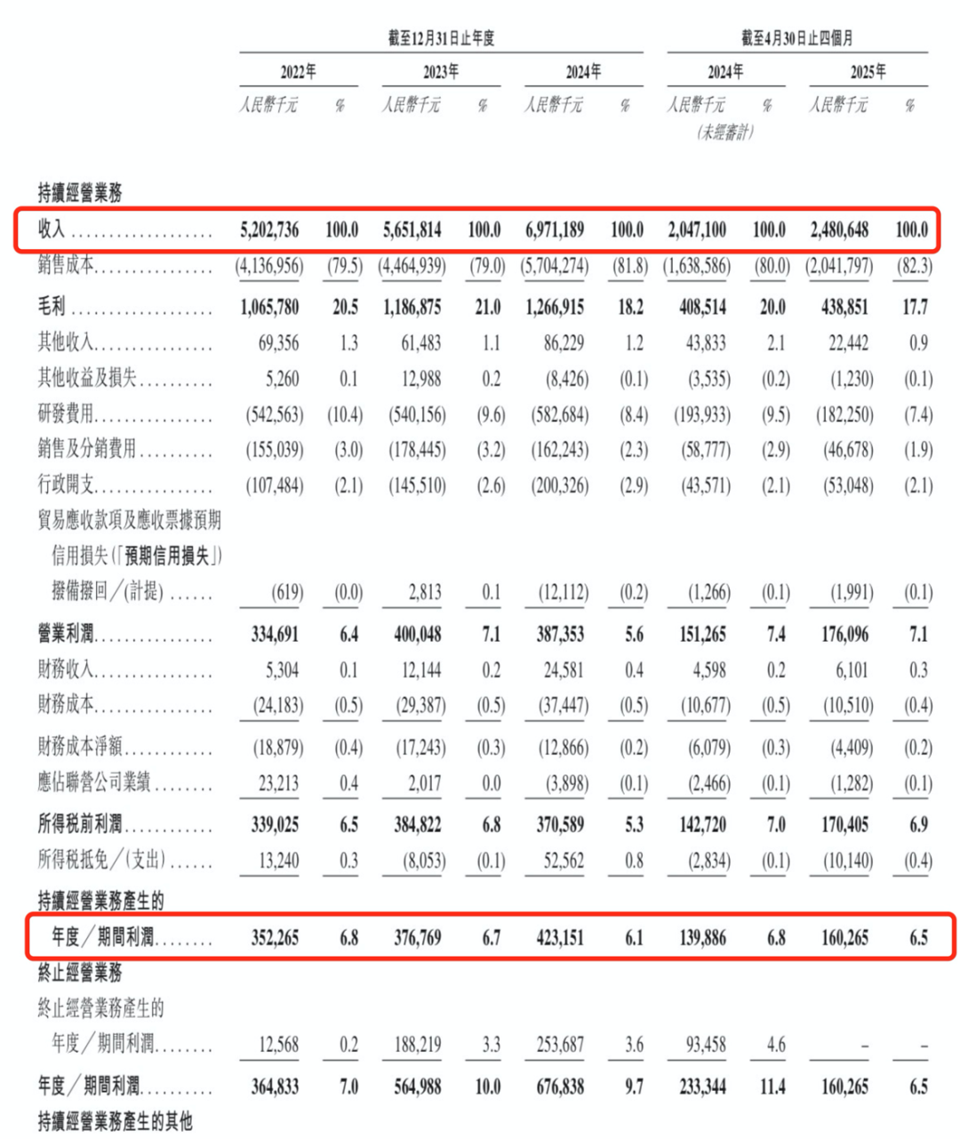 财务数据显示:2022年至2024年,广和通收入从2022年的52.03亿元增长至2024年的69.71亿元,复合增长率超过14%。同期,净利润从3.65亿元增长至6.77亿元,展现出良好的盈利能力。