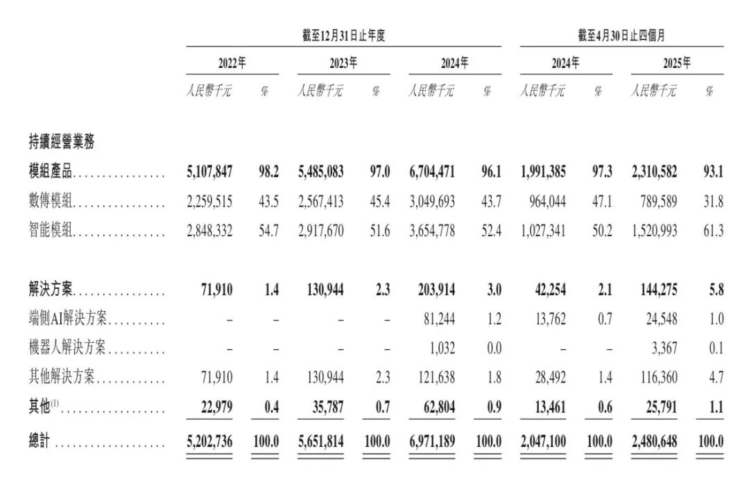 智能模组2024年销量为753.4万个,平均售价达485.1元。2025年前四个月收入占比高达61.3%,是公司最重要的收入来源。