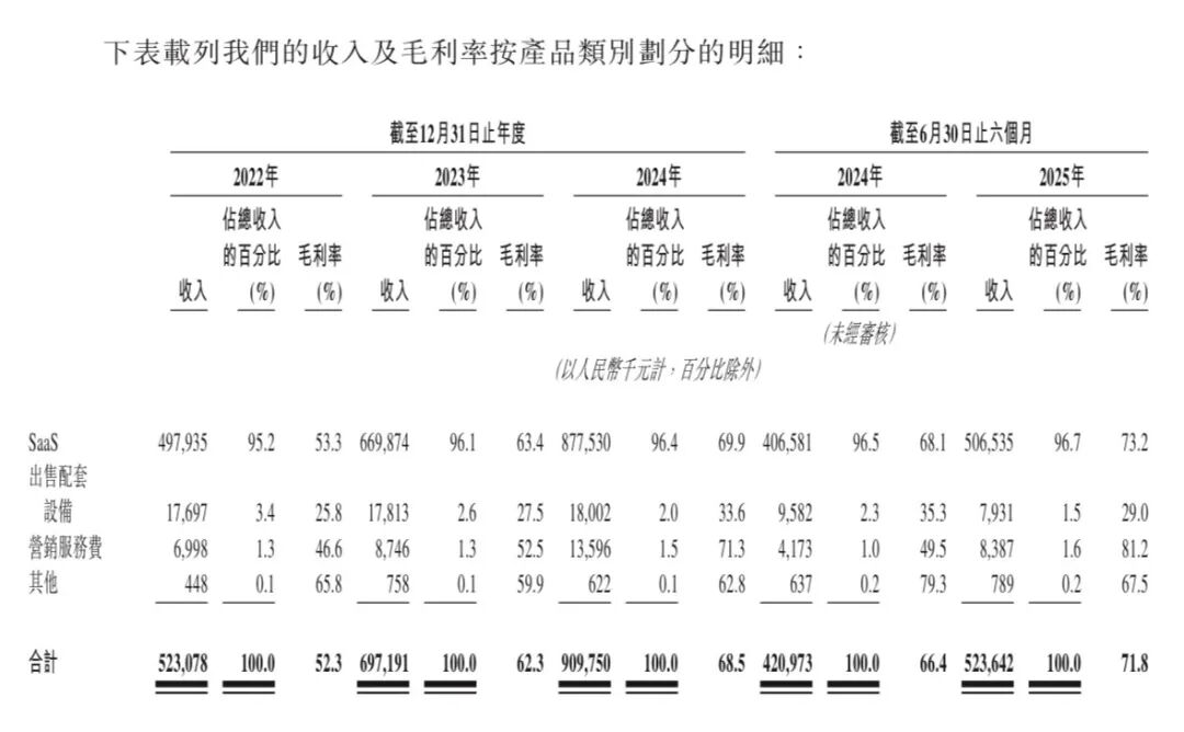 2022-2024年,聚水潭SaaS产品收入分别为4.98亿元、6.70亿元及8.78亿元,占总营收的比例分别为95.2%、96.1%及96.4%,呈现逐年上升趋势。