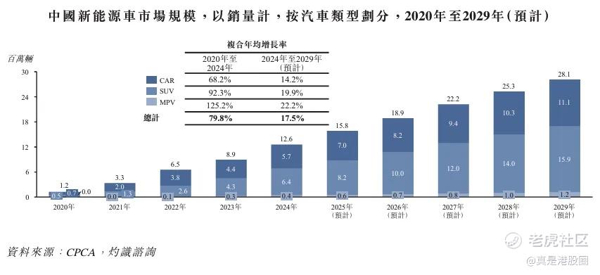 从我国新能源车的车型销售结构分析来看,截至2024年MPV销量占比为仅 3.4%;即使到了2029年,从预计数据来看,MPV销量增长至1.2百万辆,占比也仅上升至4.1%。