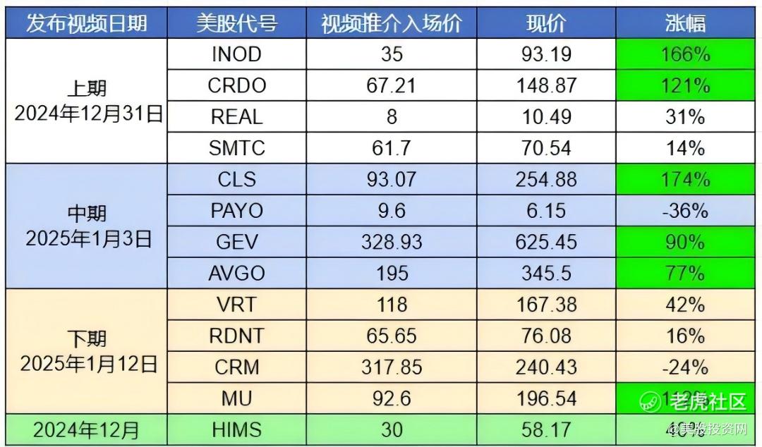 文章一开始先回顾2025年初美股投资网精选13只股,表现如何?
