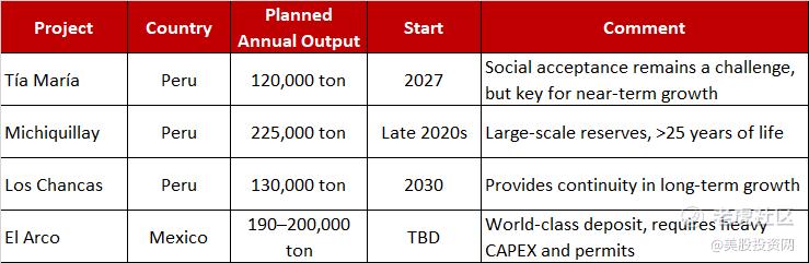 秘鲁的Tía María项目(预计2027年投产,年增产约12万吨)