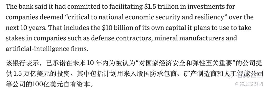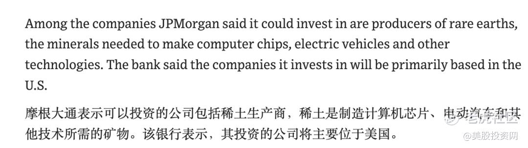 这正是为什么,连华尔街都开始重新押注稀土。摩根大通公布了一项为期十年的、规模高达1.5万亿美元的投资计划,其中明确指出——美国“已经过度依赖不稳定的关键矿产与制造来源”,必须在国内重建供应链。