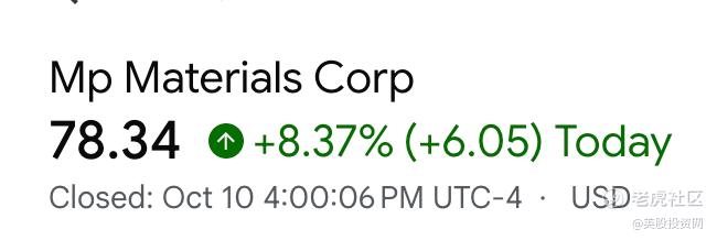 MP Materials( $MP Materials Corp.(MP)$ )。这家公司几乎是美国稀土产业链的 “唯一解”。它旗下拥有加州的 Mountain Pass 矿场,是北美唯一具备规模的稀土开采与加工基地,是“美国稀土自主化”战略下,政策和资本的头号标的。