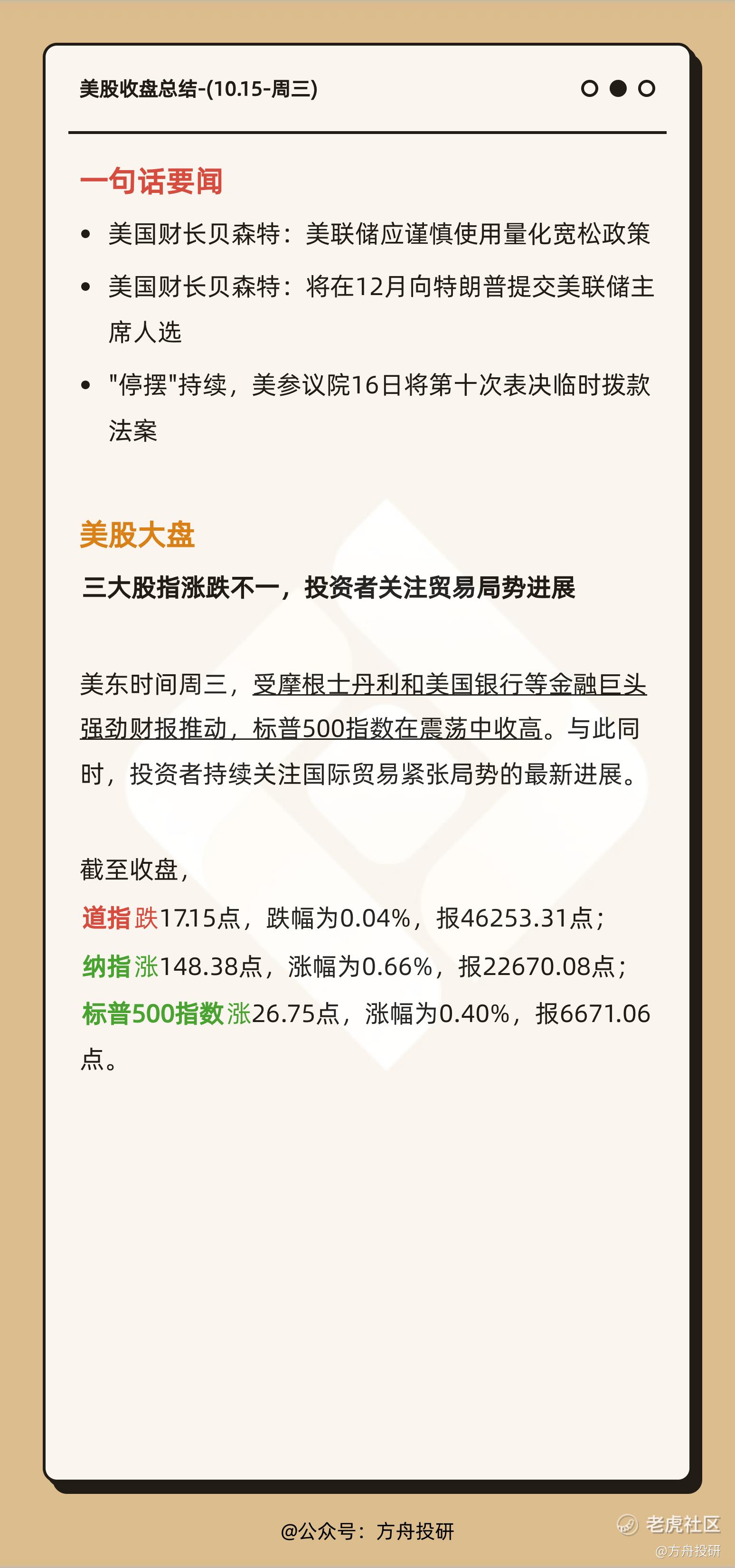 {"i18n":{"language":"zh_CN"},"detailType":1,"isChannel":false,"data":{"magic":2,"id":489696825716888,"tweetId":"489696825716888","gmtCreate":1760582460539,"gmtModify":1760582466418,"author":{"id":3574248082782203,"idStr":"3574248082782203","authorId":3574248082782203,"authorIdStr":"3574248082782203","name":"方舟投研","avatar":"https://static.tigerbbs.com/096674f9c30dc2a4600045b95ec19100","vip":1,"userType":1,"introduction":"","boolIsFan":false,"boolIsHead":false,"crmLevel":1,"crmLevelSwitch":0,"individualDisplayBadges":[],"fanSize":37,"starInvestorFlag":false},"themes":[],"images":[{"img":"https://static.tigerbbs.com/7b5af4f9b71f33c0e3f6cb3077a2af9e","width":"1548","height":"3300"},{"img":"https://static.tigerbbs.com/38e5375fcdbcd325f58f74e2122ecb2f","width":"1548","height":"3300"}],"coverImages":[{"img":"https://static.tigerbbs.com/7b5af4f9b71f33c0e3f6cb3077a2af9e","width":"1548","height":"3300"}],"html":"<html><head></head><body>10月 15 日美股收盘。\n<br>\n美国参议院将于16日再次就众议院通过的“干净版”政府临时拨款法案进行第十次表决。该法案需60票才能推进,但美国媒体预计其仍将遭到否决。<img src=\"https://static.tigerbbs.com/7b5af4f9b71f33c0e3f6cb3077a2af9e\" tg-width=\"1548\" tg-height=\"3300\"><img src=\"https://static.tigerbbs.com/38e5375fcdbcd325f58f74e2122ecb2f\" tg-width=\"1548\" tg-height=\"3300\"></body></html>","htmlText":"<html><head></head><body>10月 15 日美股收盘。\n<br>\n美国参议院将于16日再次就众议院通过的“干净版”政府临时拨款法案进行第十次表决。该法案需60票才能推进,但美国媒体预计其仍将遭到否决。<img src=\"https://static.tigerbbs.com/7b5af4f9b71f33c0e3f6cb3077a2af9e\" tg-width=\"1548\" tg-height=\"3300\"><img src=\"https://static.tigerbbs.com/38e5375fcdbcd325f58f74e2122ecb2f\" tg-width=\"1548\" tg-height=\"3300\"></body></html>","text":"10月 15 日美股收盘。 美国参议院将于16日再次就众议院通过的“干净版”政府临时拨款法案进行第十次表决。该法案需60票才能推进,但美国媒体预计其仍将遭到否决。","highlighted":1,"essential":1,"paper":1,"likeSize":1,"commentSize":0,"repostSize":0,"favoriteSize":0,"link":"https://laohu8.com/post/489696825716888","repostId":0,"isVote":1,"tweetType":1,"viewCount":152,"commentLimit":10,"likeStatus":false,"favoriteStatus":false,"reportStatus":false,"symbols":[],"verified":2,"subType":0,"readableState":1,"langContent":"CN","currentLanguage":"CN","warmUpFlag":false,"orderFlag":false,"shareable":true,"causeOfNotShareable":"","featuresForAnalytics":[],"commentAndTweetFlag":false,"andRepostAutoSelectedFlag":false,"upFlag":false,"length":142,"optionInvolvedFlag":false,"xxTargetLangEnum":"ZH_CN"},"commentList":[],"isCommentEnd":true,"isTiger":false,"isWeiXinMini":false,"url":"/m/post/489696825716888"}