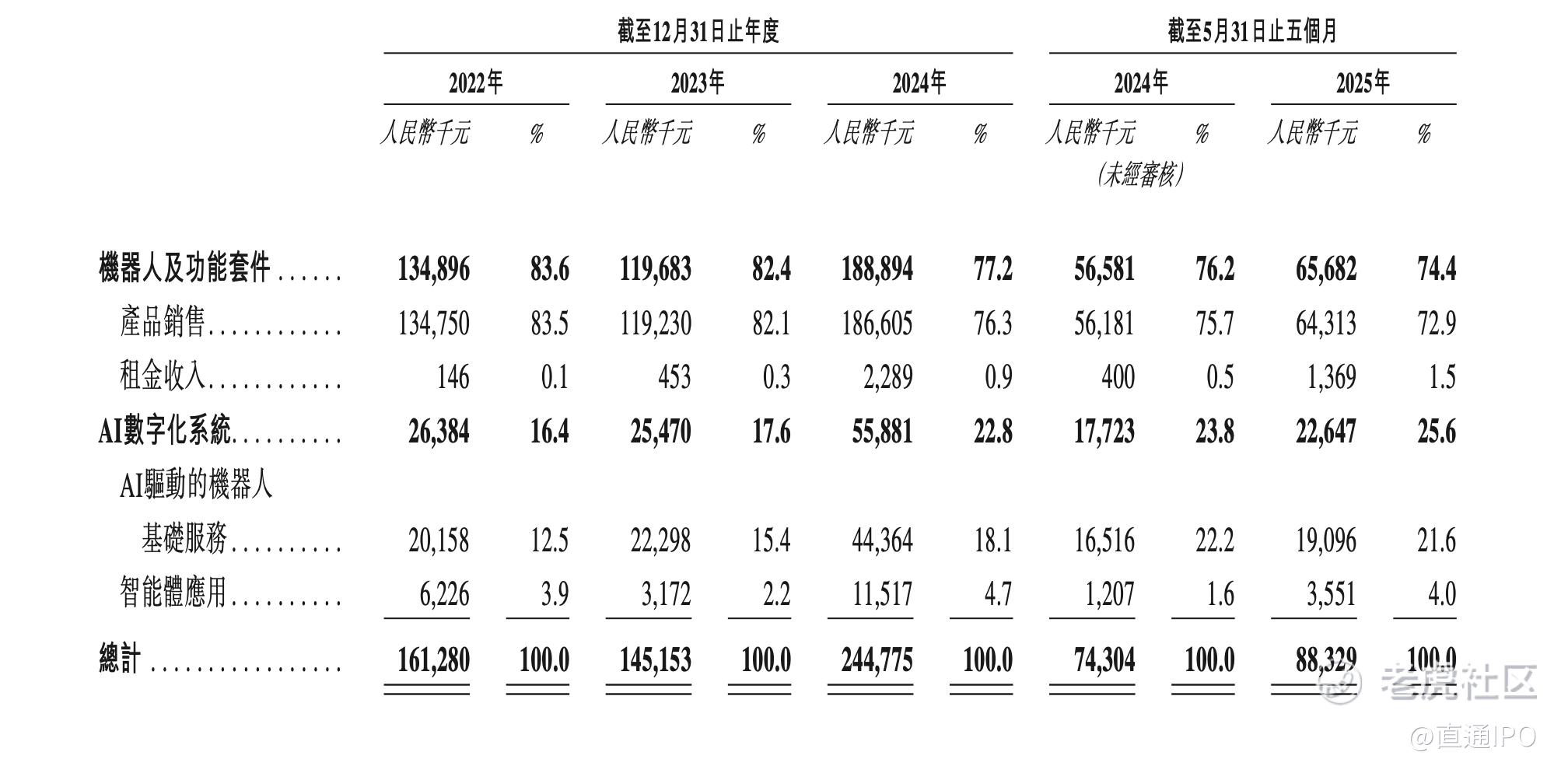 招股书显示,云迹科技的产品及服务组合主要销售或租赁机器人及功能套件的交易及租赁付款;在AI数字化系统下提供服务的订阅式、交易及佣金式付款。同时,公司也通过向个人客户销售商品产生收入。