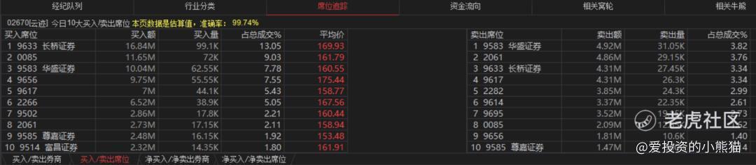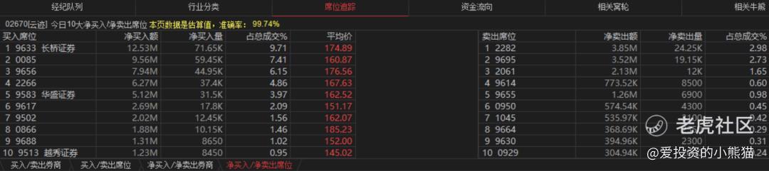 云迹(02670.HK)买盘席位有9633、0085等,卖盘第一席位是2282,0950在卖盘第6席位。