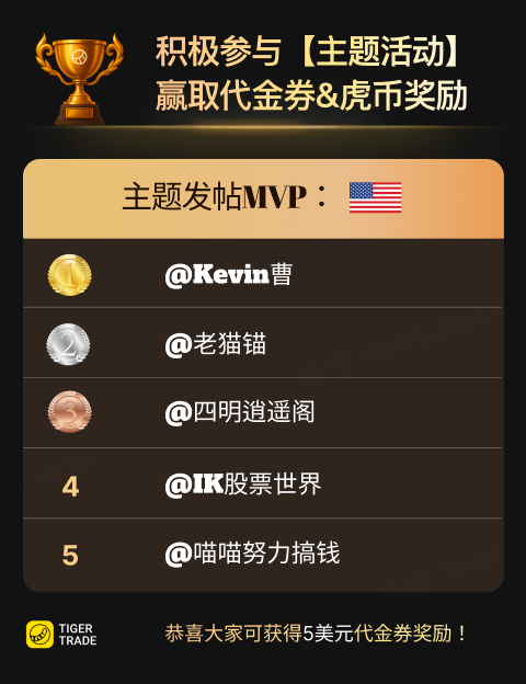 恭喜以下5位小虎,成为近期主题发帖积极&精彩用户,可获5美元代金券奖励![梭哈]