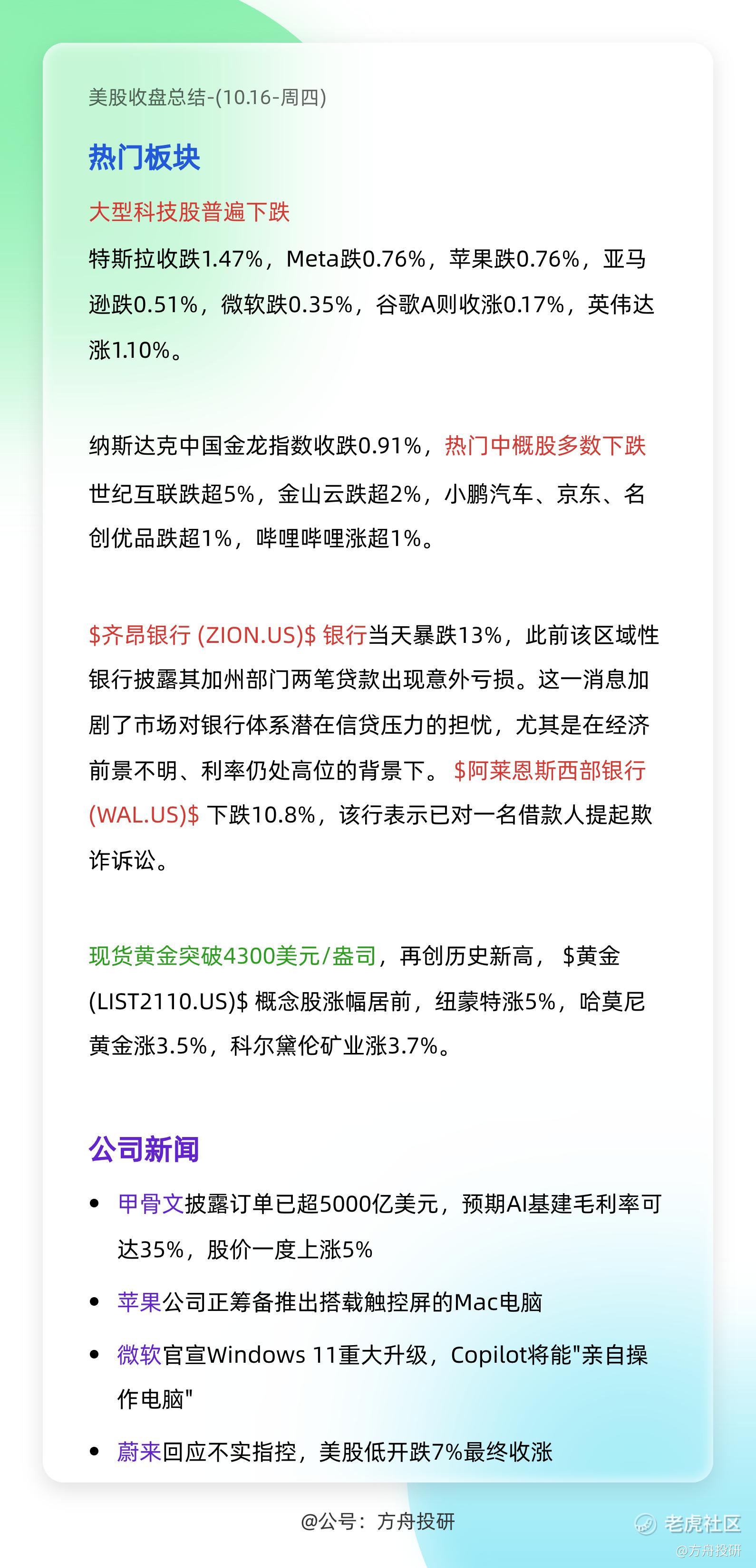 10 月 16 日(周四)美股