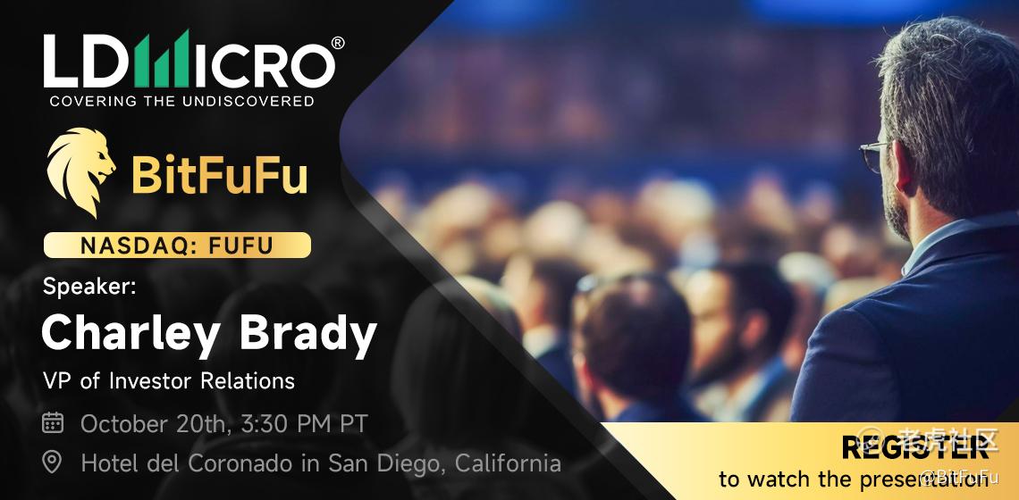 Our Vice President of Investor Relations, Charley Brady, will present at the 19th annual LD Micro Main Event on October 20 at 3:30 PM PT, to introduce BitFuFu’s dual-engine business model, ongoing infrastructure expansion, operational efficiency initiatives, and Bitcoin treasury growth.