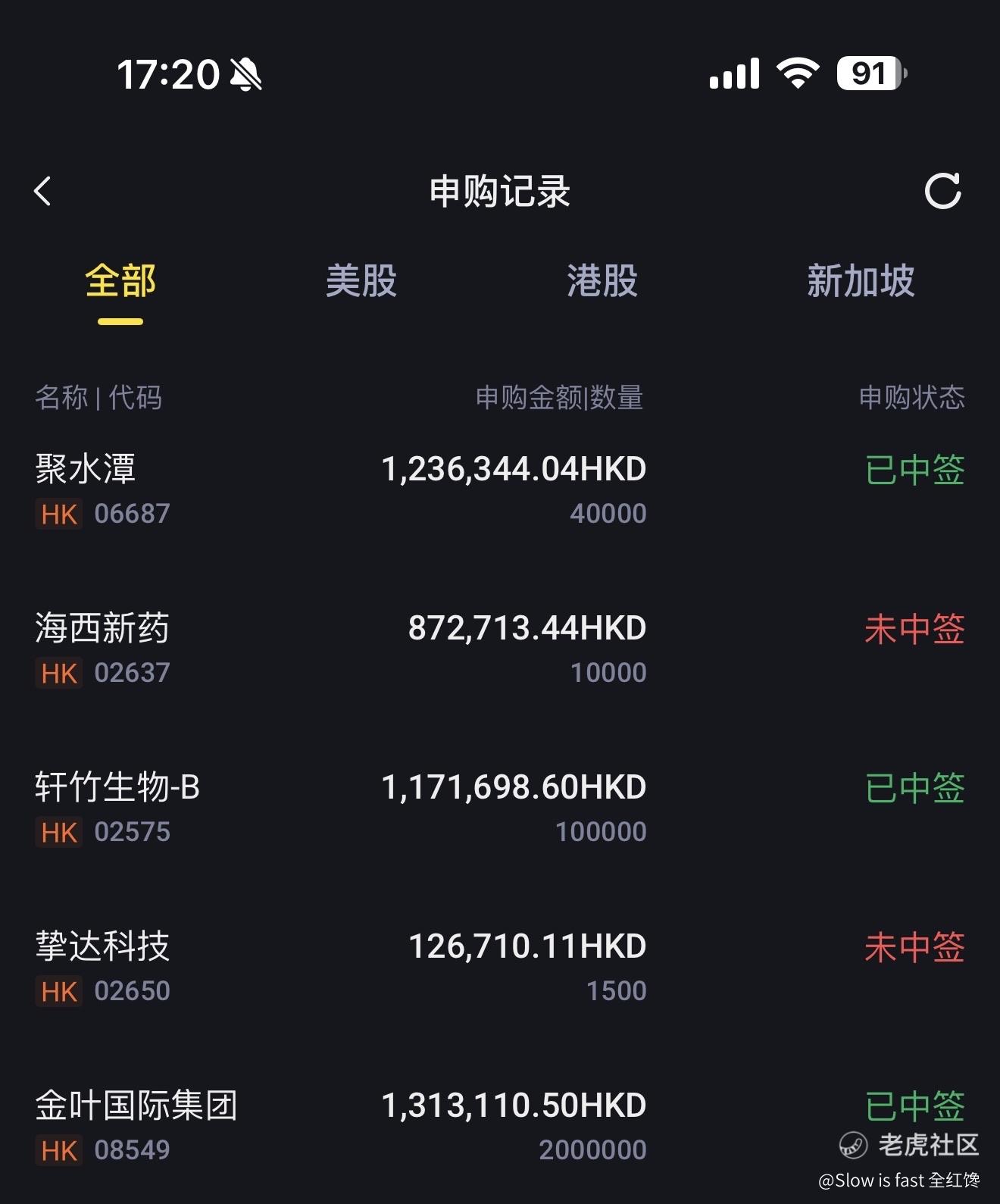 我也没多少本金,开10倍杠杆也就一百多万港币申购额。就是运气还可以