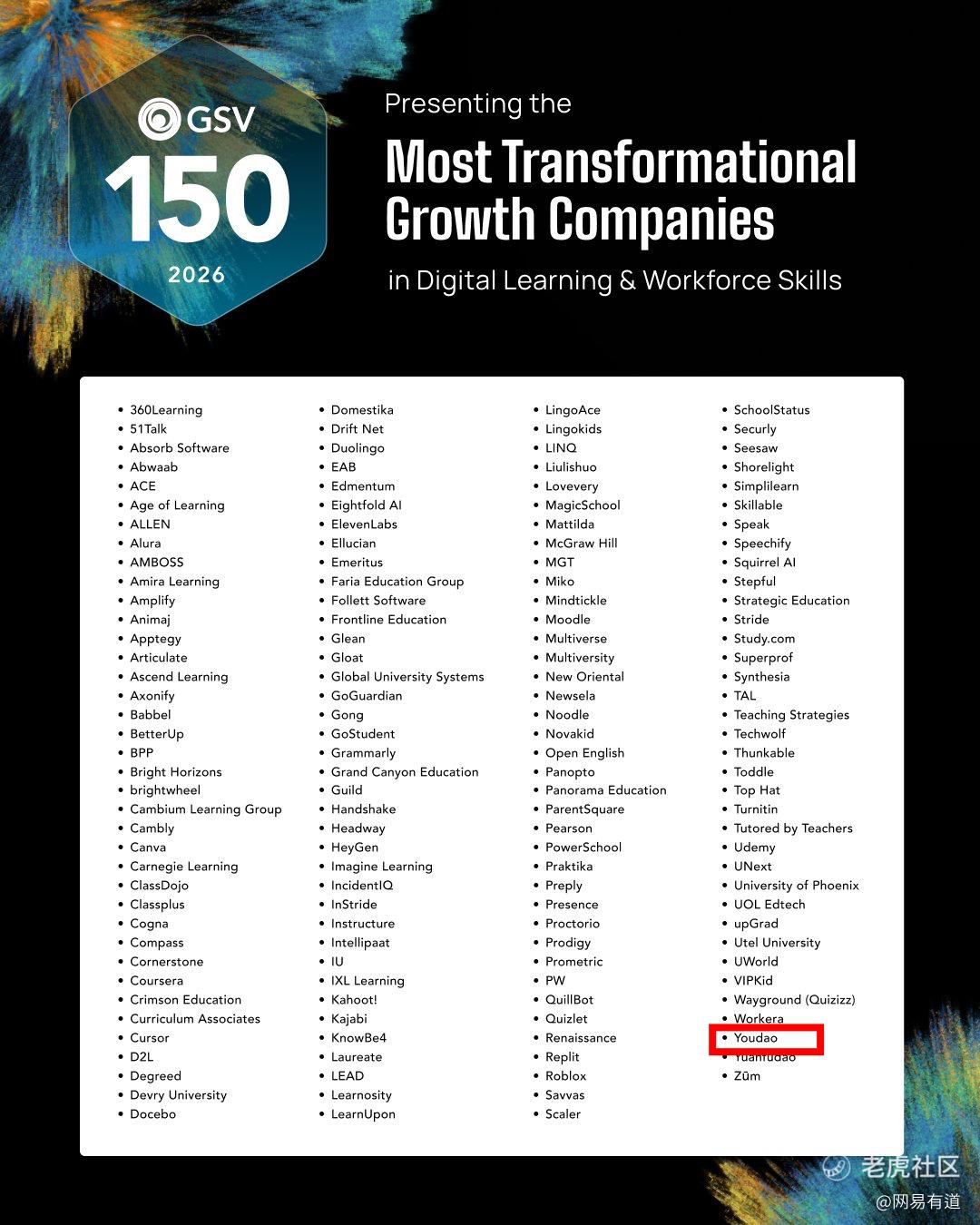 近日,有道入选2026年 GSV150 榜单,跻身全球数字学习领域最具变革力的公司。