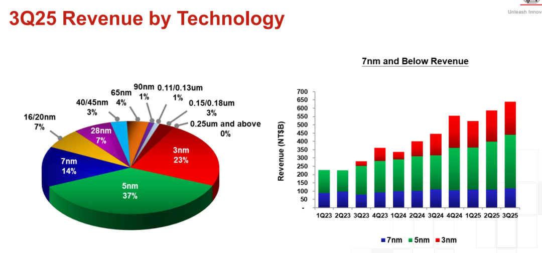各个制程情况:3nm占收入23%,5nm为37%,7nm为14%,先进制程共占74%,持平上一季度;
