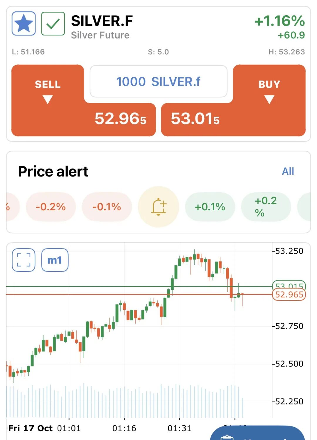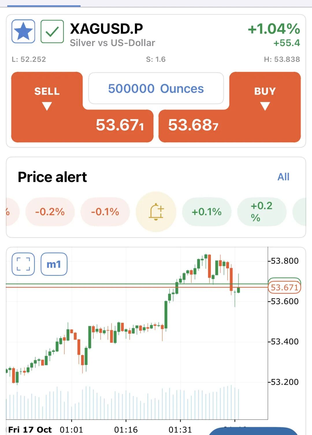 2. 白银的现货价$53.68比期货价$53.01贵。