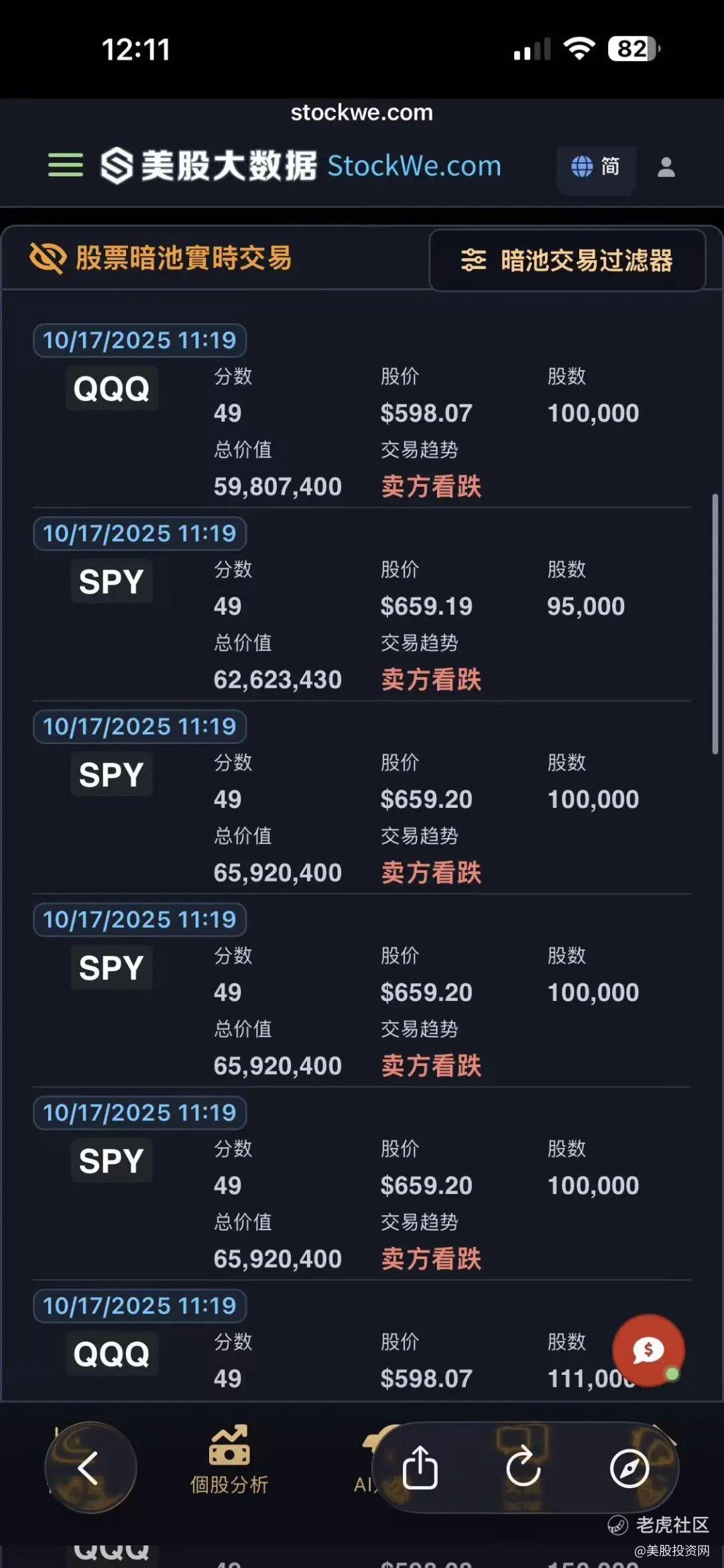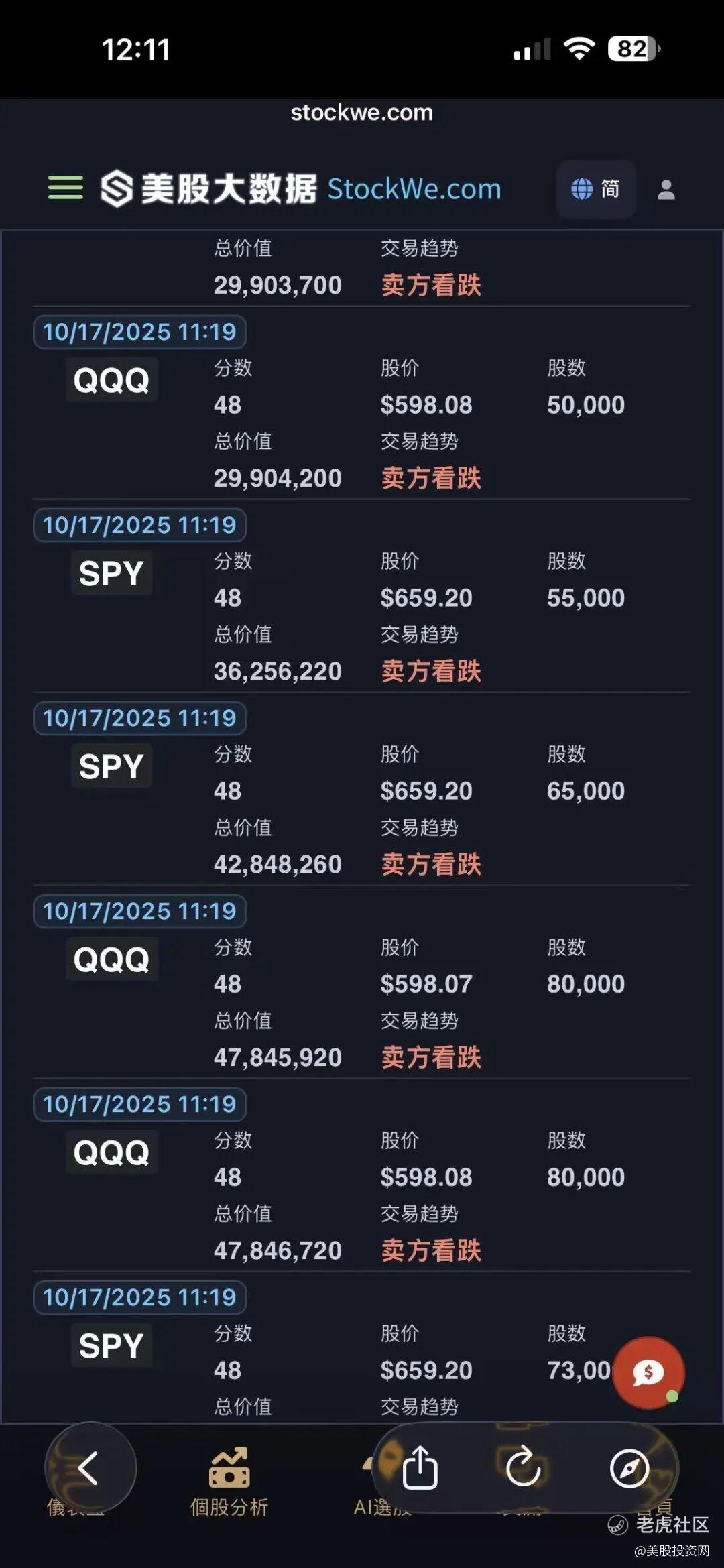 今天我们的美股AI大数据分析工具StockWe.com监测到,机构在暗池Darkpool抛售了总价值41亿美元的标普500指数SPY和纳指QQQ。