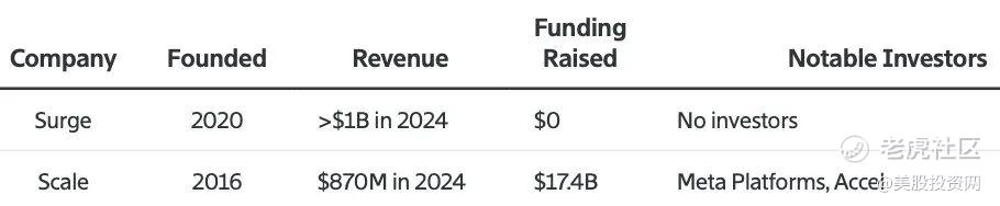 公司的技术实力得到了顶级AI巨头的认可。我们美股投资网研究发现Surge AI与OpenAI、Anthropic等大型模型公司建立了合作,并参与了多个知名大模型的训练过程 。