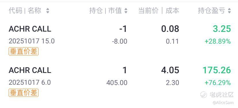 有时候我也操作一下高波动套利,利用BOTZ、SOX等科技ETF的波动性做跨期或跨价差组合,这个我没有经常做,有时候控制不好自己的情绪,经常拆掉一条腿,然后又后悔。前阵子$Archer Aviation Inc.(ACHR)$ 上蹿下跳的大起大落,我尝试去操作了一个垂直价差,一路上都心惊胆颤的,这个波动大的,心脏不强大的人,真的要慎重一下。