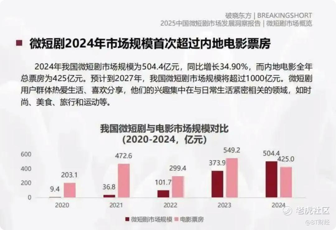 正如周鸿祎所说,十亿人离不开短视频,短剧的受众人数可想而知。2024年中国短剧市场规模达505亿元,首超电影票房,预计2027年将突破856亿。短剧成为资本的新宠儿。