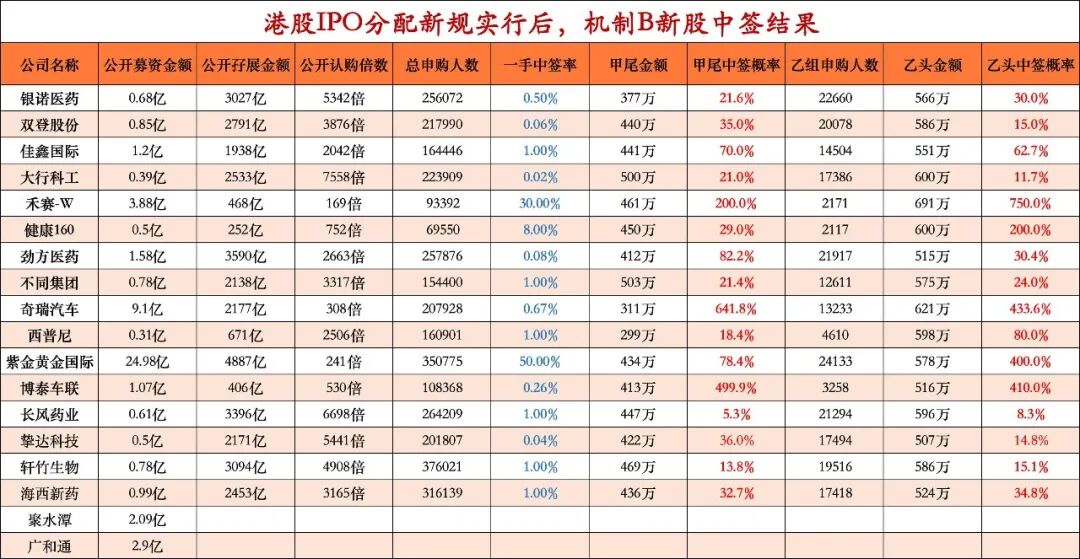 根据港股IPO分配新规实施后的17只机制B新股中签结果来看(包括聚水潭),在不考虑资金利用效率的情况下,有8只新股甲尾总中签率比乙头高。如果考虑资金利用效率,有11只新股打新甲尾更划算。但如果都只打甲尾的话,也有可能错过像紫金黄金这样的大肉签,乙头的中签概率远远超过甲尾。