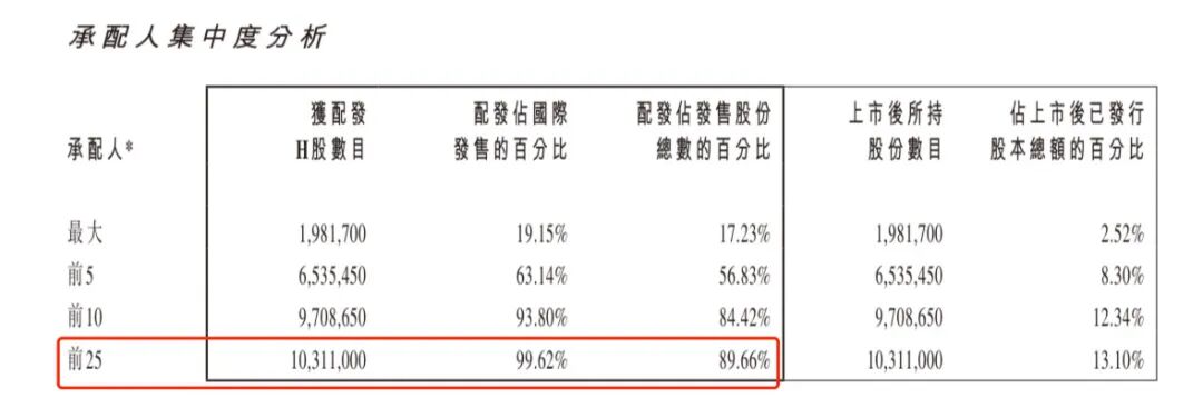 从海西新药公布的新股配发结果来看,国配90%的份额仅有46名承配人,这意味着无论有多少人参与国售的申购,最终只有这46人获得了股份分配。所以我们可以看到前25大承配人占国配总数的99.62%,股权高度集中,这是准备控盘暴力拉升的节奏。